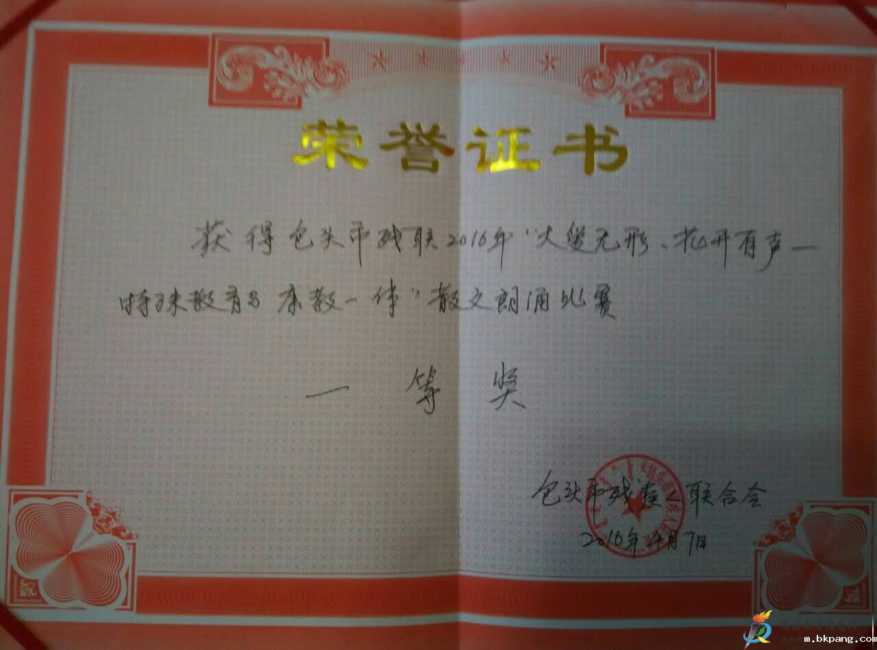 团三小由郝巧玲副校长带队的3人合诵《与你牵手是一种幸福》,为大家上了一堂生动的“特教”课。作为奋斗在特殊教育第一线的工作者,真实情感的宣泄感动着在场的每一位观众,让现场观众切身感受到特殊教育的艰辛和困难,感受到特教工作者的大爱情怀和无私奉献。观众们一会儿陷入沉思,一会儿掌声雷动,整个会场沉浸在散文朗诵的意境中。团三小的参赛作品在比赛中以绝对的优势取得一等奖的好成绩。通过朗诵平台进一步扩大了对团三小校中校(昆区培智学校)的宣传,营造良好的社会舆论氛围,让社会各界人士关注、关心、关爱残疾人群体,让残疾人更加和谐的融入社会。
