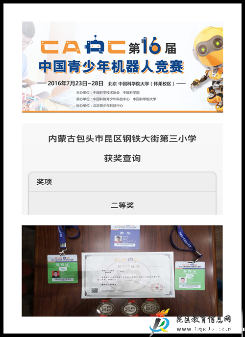 日前,第16届中国青少年机器人竞赛在中国科学院大学胜利闭幕,钢三小郝然、王思然、郭明睿同学经过1天五轮筛选,1天技术答辩和课题研究答辩,最终以总分1063.33分喜获FLL工程挑战赛的二等奖!