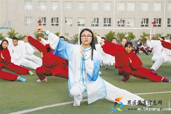 包钢三中开展的德育活动丰富多彩。图为学校艺术节初二六班师生太极拳表演
