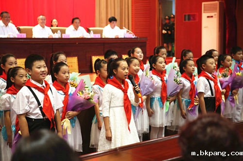 会议在庄严的国歌声中拉开了帷幕。包钢实验一小少先队员们带来的献词,仿佛将与会人员带到了朗朗书声的课堂,让人们看到了奋斗在教学一线的最美教师们。童声稚语,情深意切,表达着他们对老师们的深深敬意,倾述着他们对老师们的款款真情。