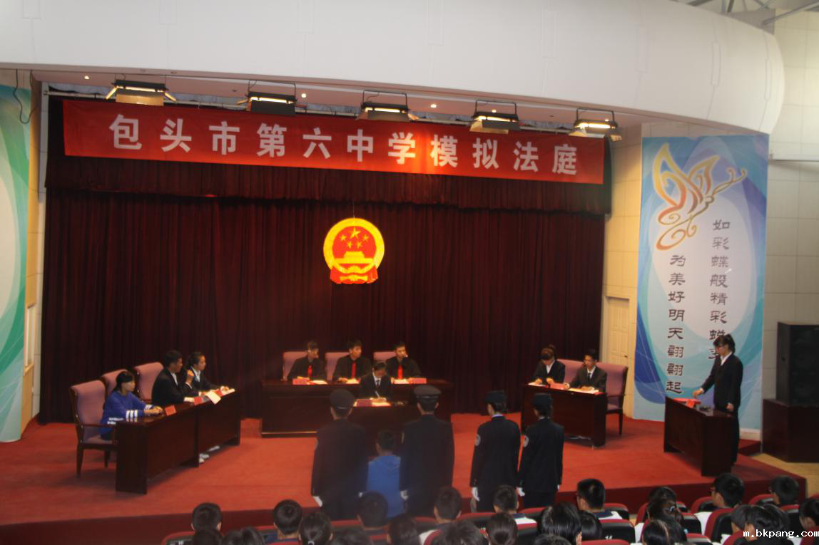 青少年维权岗是服务青少年健康成长的前沿阵地和窗口。近年来,包头六中将 "青少年维权岗" 的工作落实与未成年人思想道德建设和文明校园、平安校园创建工作紧密结合,立足学生成长需求,积极与检察院、法院等相关部门联系,主动拓宽权益服务途径,关心关注青少年的健康成长,切实维护青少年的合法权益。在广大学生中广泛开展模拟法庭教育、普法知识讲座、法律知识竞赛、考前心理减压等活动,还在一年一度的十八岁成人仪式中增设法治教育环节,将法治素养作为公民教育的第一课。